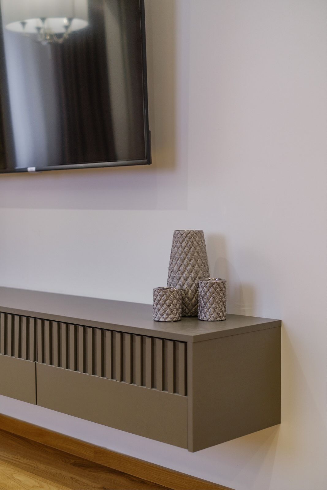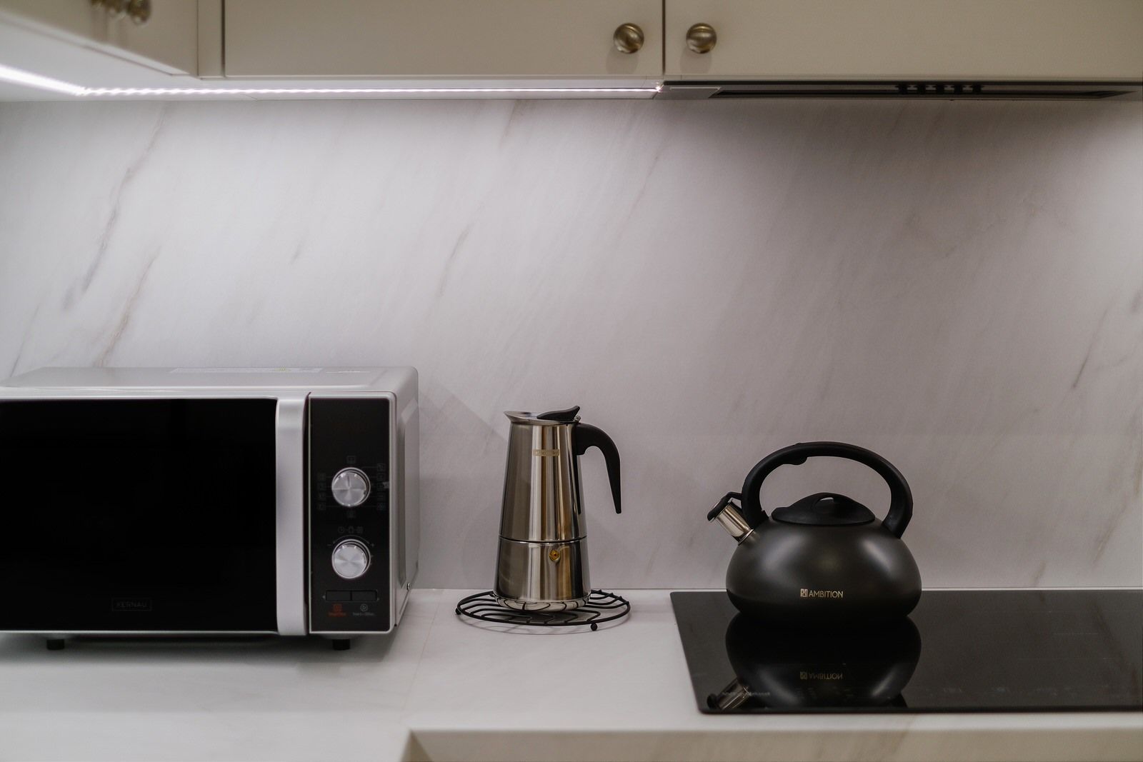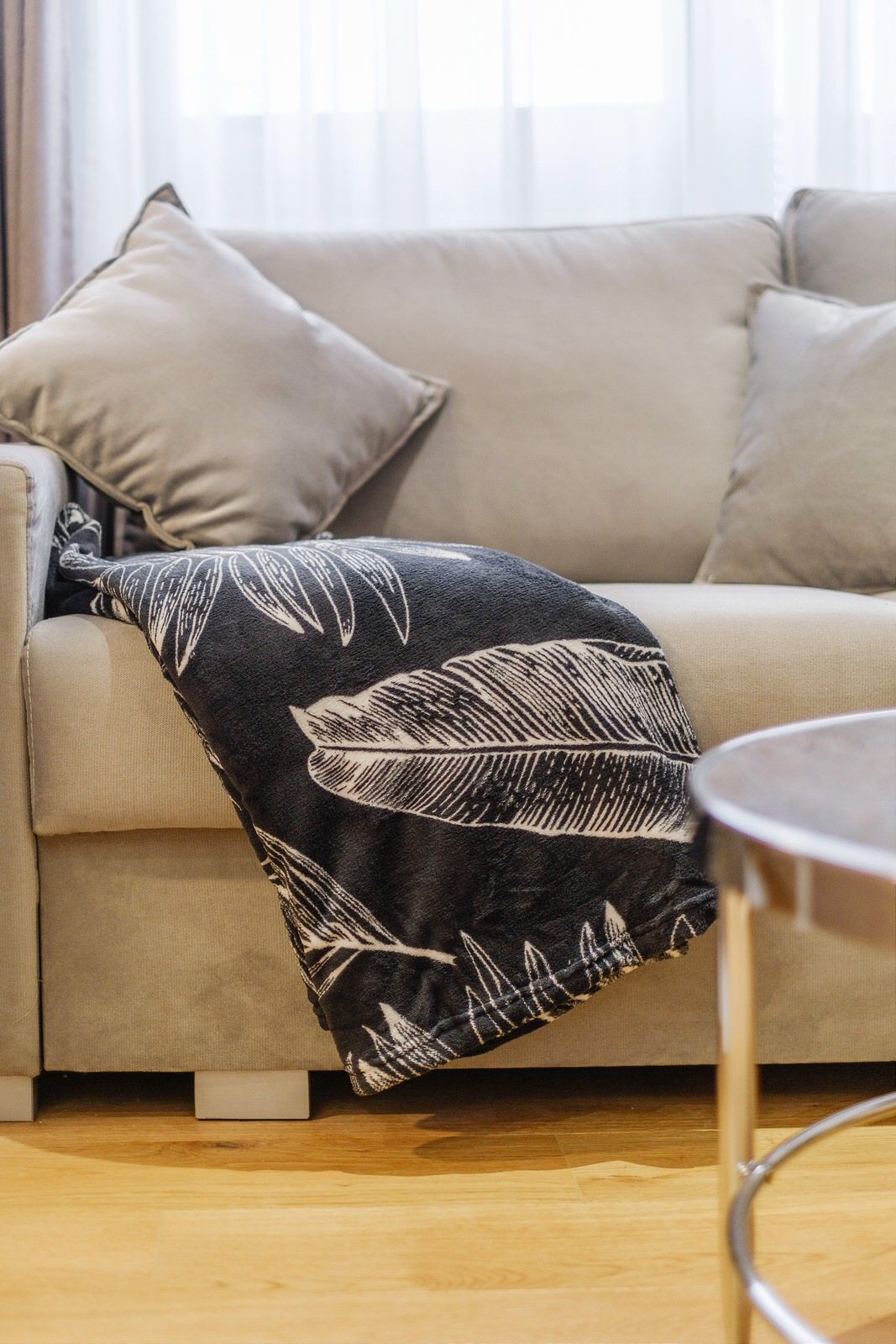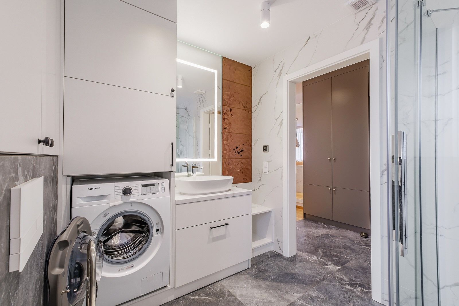 Apartament składa się z oddzielnej sypialni z łóżkiem małżeńskim, dużej szafy oraz szafek nocnych. W salonie znajduje się dodatkowo rozkładana sofa na dwie osoby. Obiekt wyposażony jest w obszerną łazienkę, w skład której wchodzi kabina prysznicowa oraz pralka. Apartament posiada także w pełni wyposażony aneks kuchenny oraz wyspę. Wyjście na balkon prowadzi z sypialni.