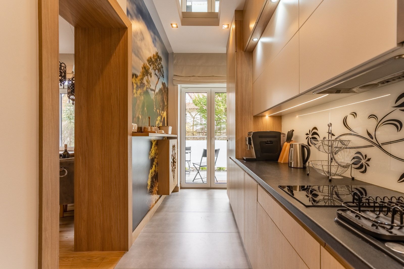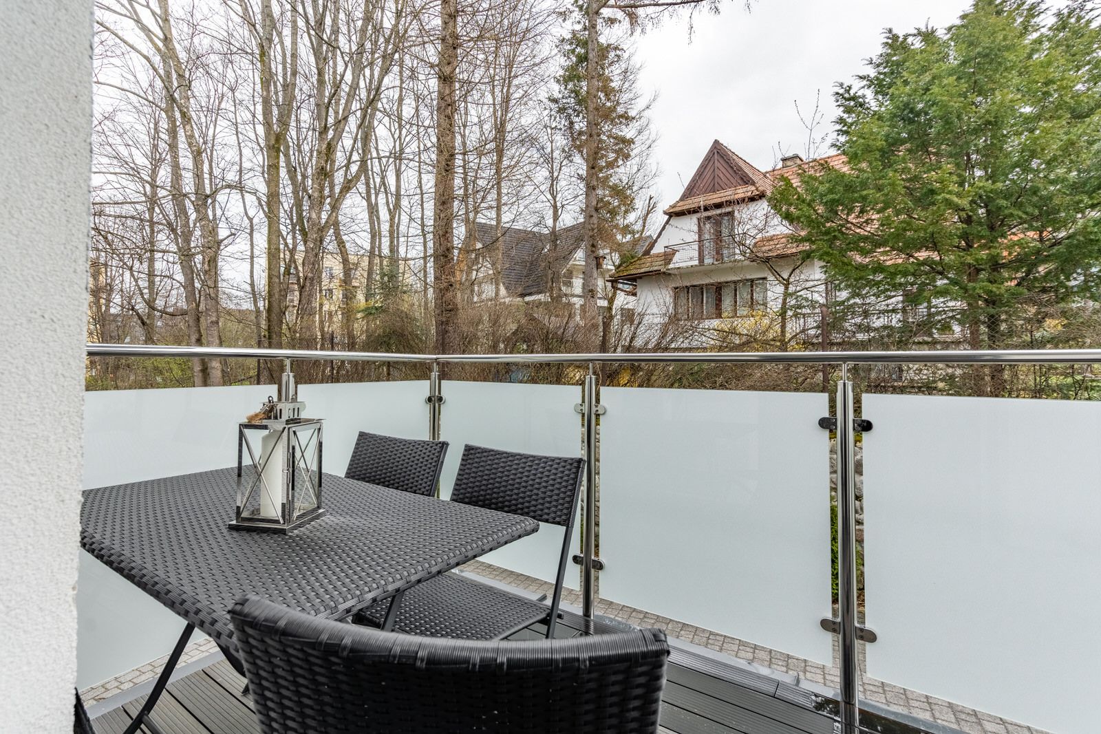 Apartament składa się z sypialni oraz salonu z wydzielonym aneksem kuchennym, który jest doskonale wyposażony. Goście mają do dyspozycji również prywatny balkon z meblami ogrodowymi.