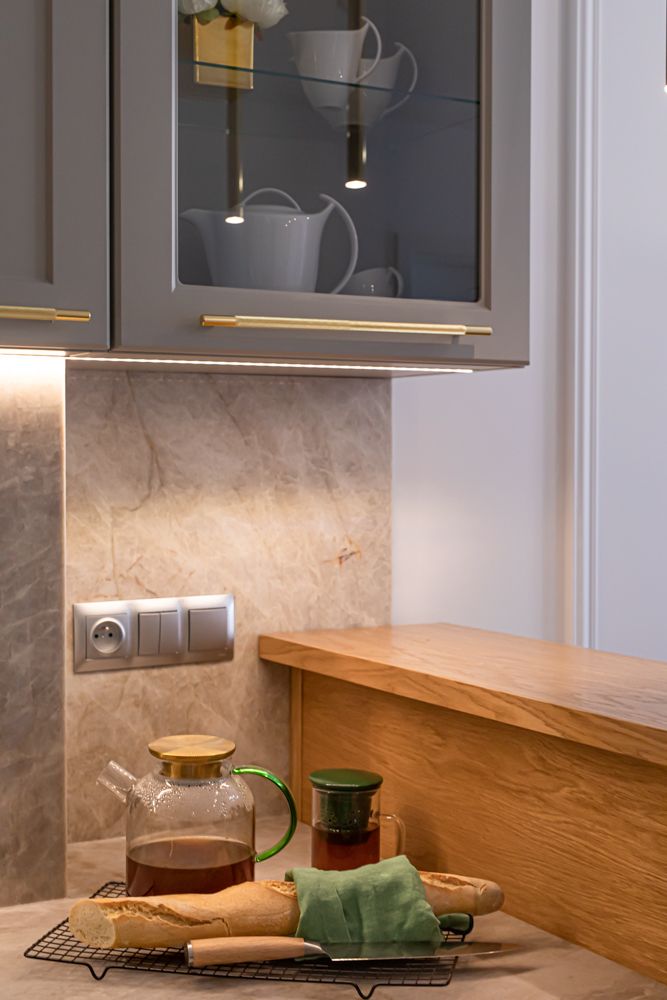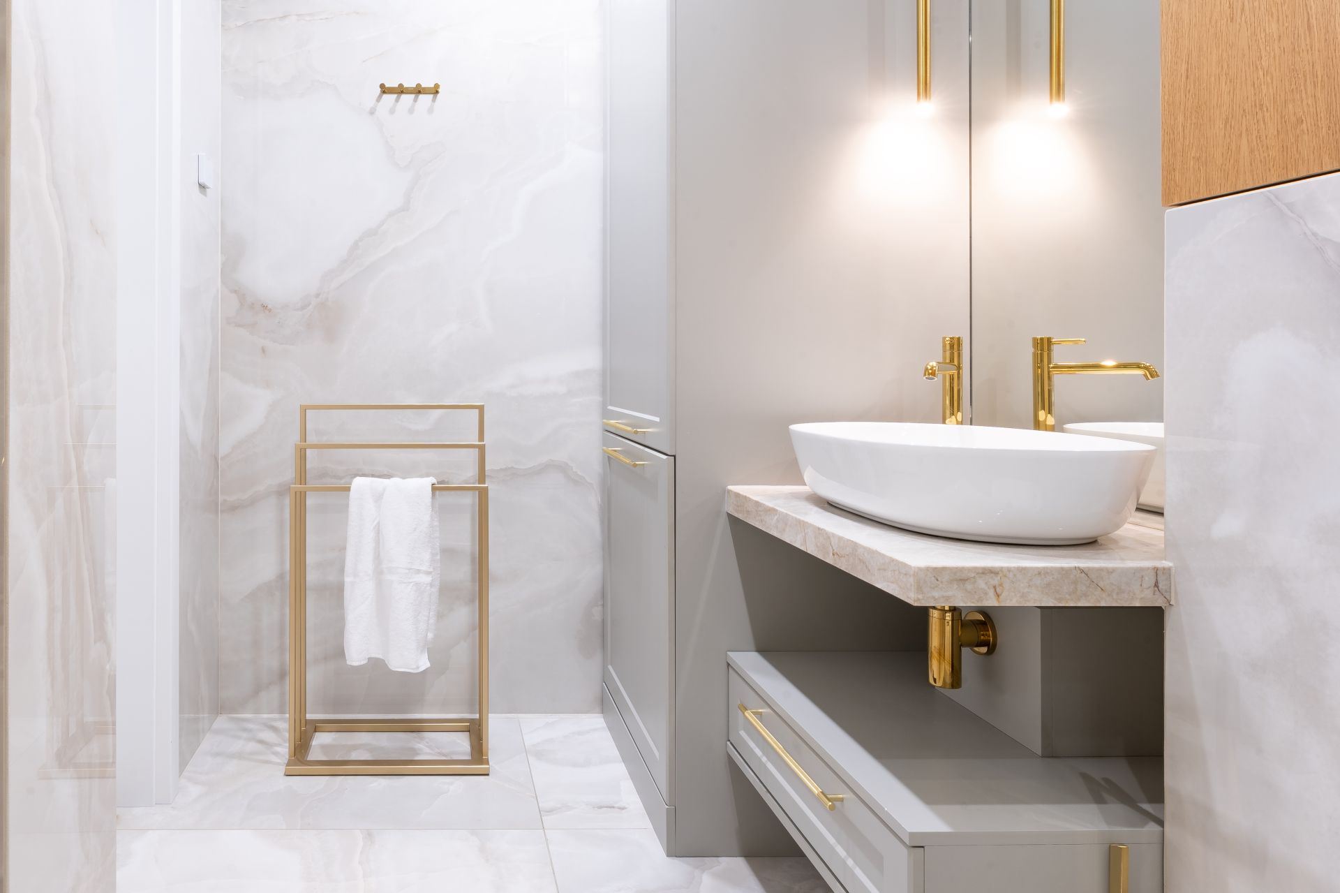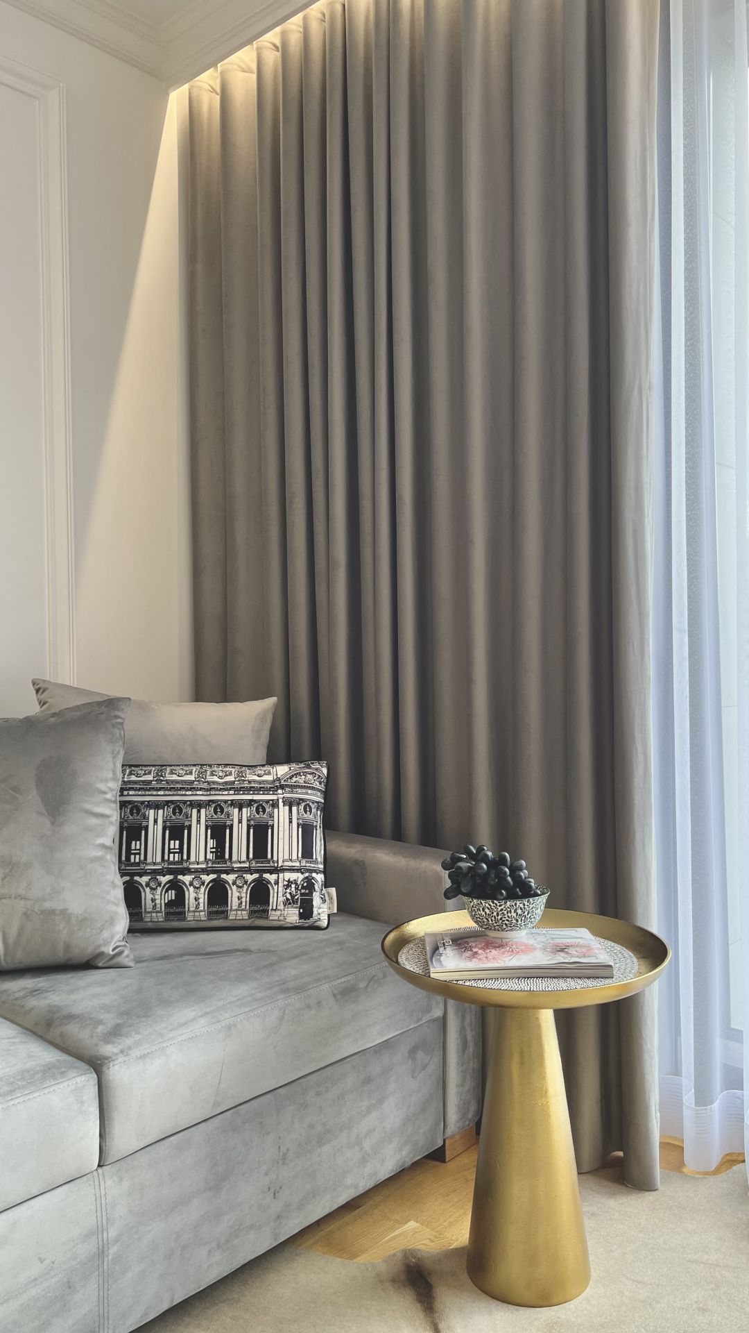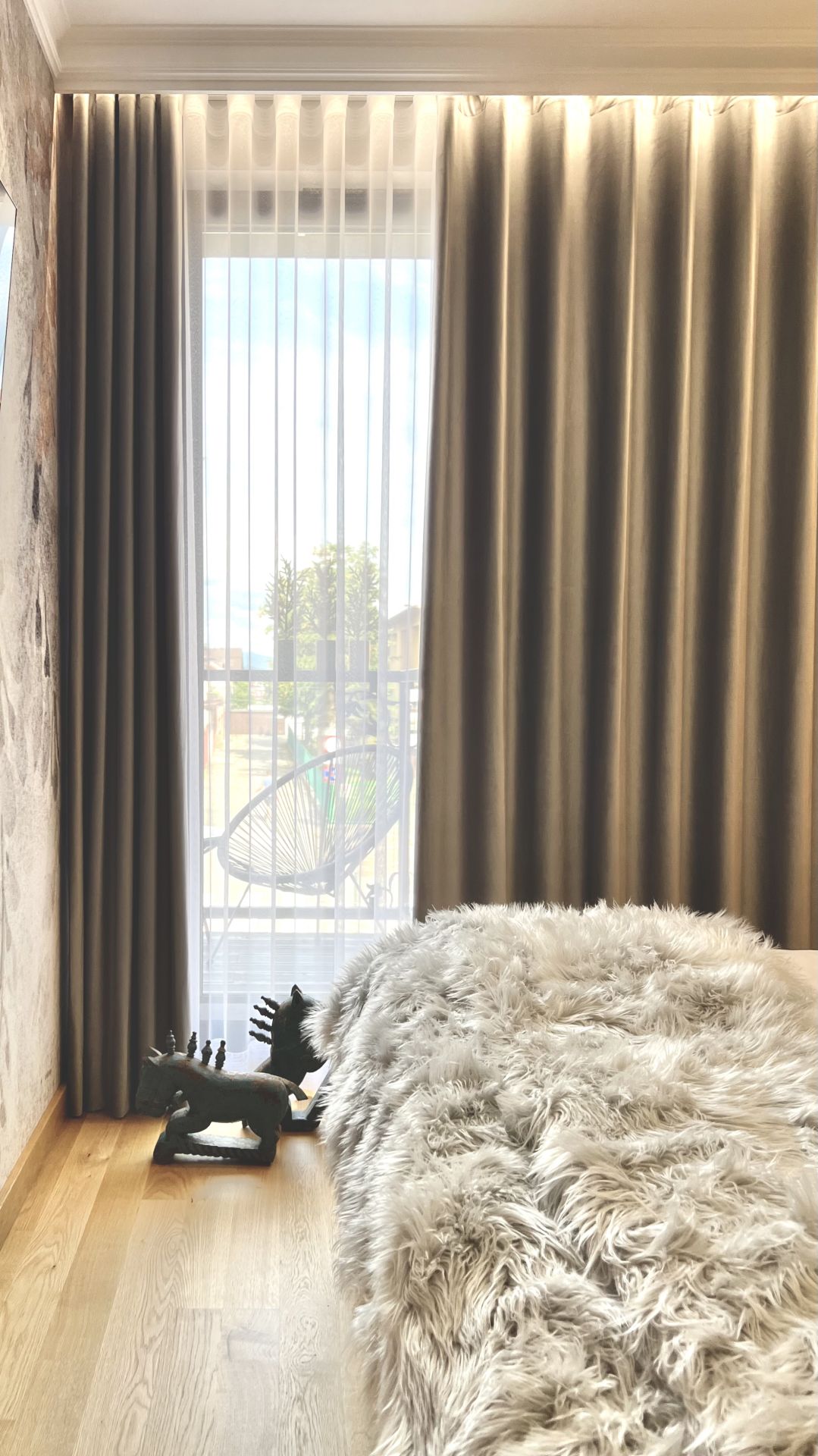 Apartament składa się z oddzielnej sypialni z łóżkiem małżeńskim, dużej szafy oraz stolików nocnych. Łazienka wyposażona jest w kabinę prysznicową oraz pralkę. Apartament ma w pełni wyposażony aneks kuchenny. Wyjście na prywatny balkon jest z sypialni oraz salonu.