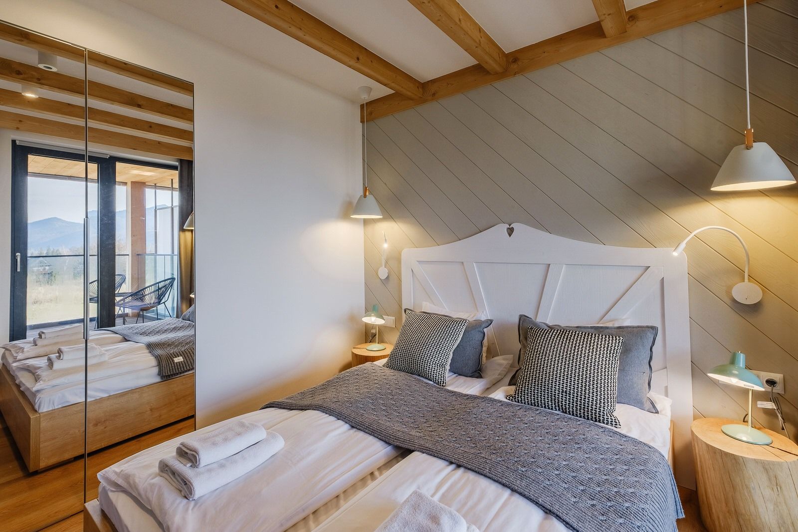 Apartament posiada w pełni wyposażony aneks kuchenny, łazienkę, w skład której wchodzi kabina prysznicowa, a także sypialnię z łóżkiem małżeńskim.