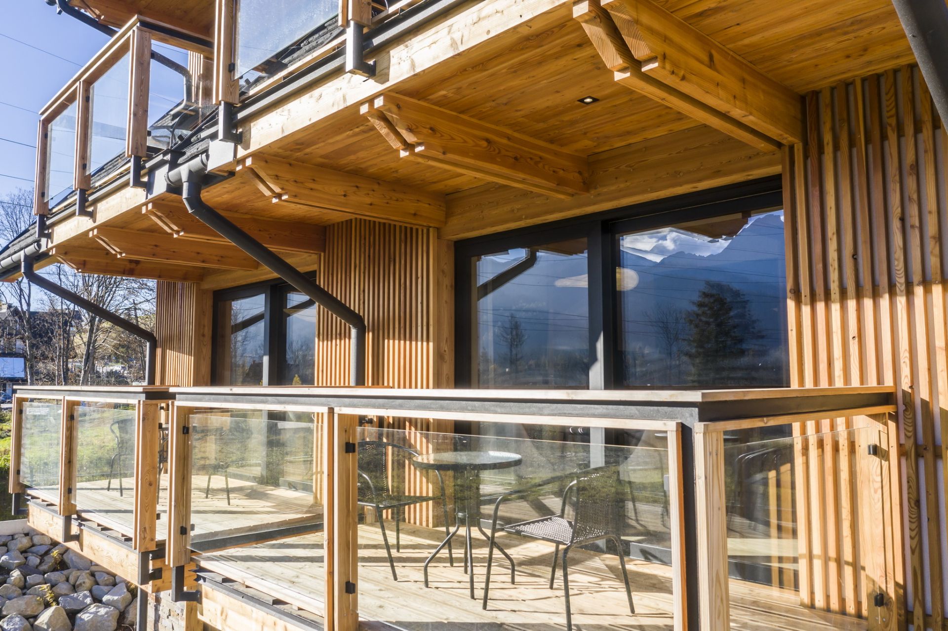 Wszystko zostało urządzone w pięknym nowoczesnym stylu z akcentami podhalańskimi. Z balkonu można podziwiać przepiękny widok na pełną panoramę Tatr i Giewont.