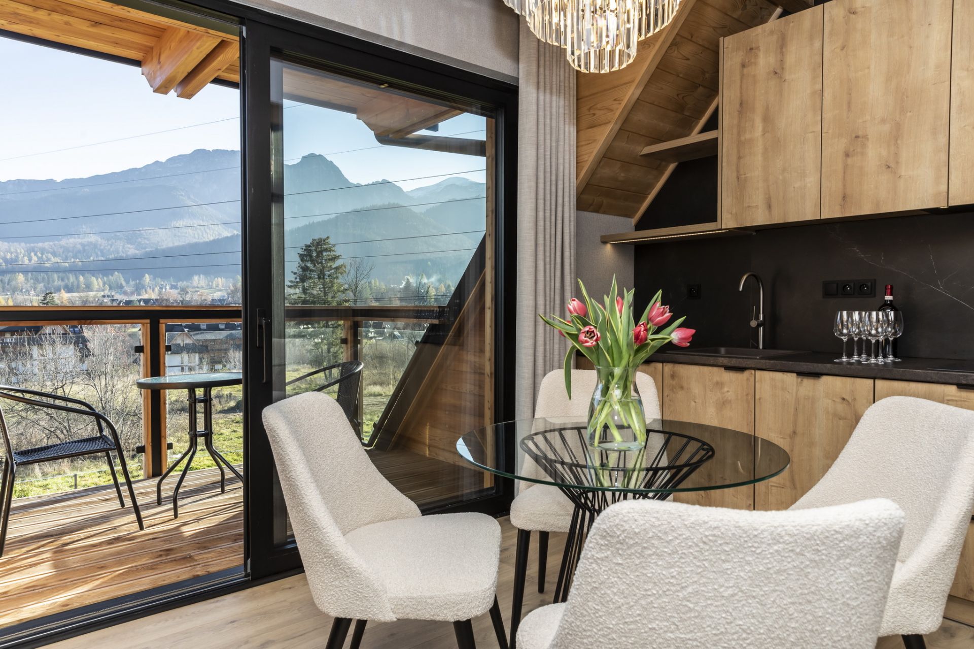 Duże okna oraz balkon pozwalają na podziwianie bajecznego widoku na Giewont oraz Zakopane.