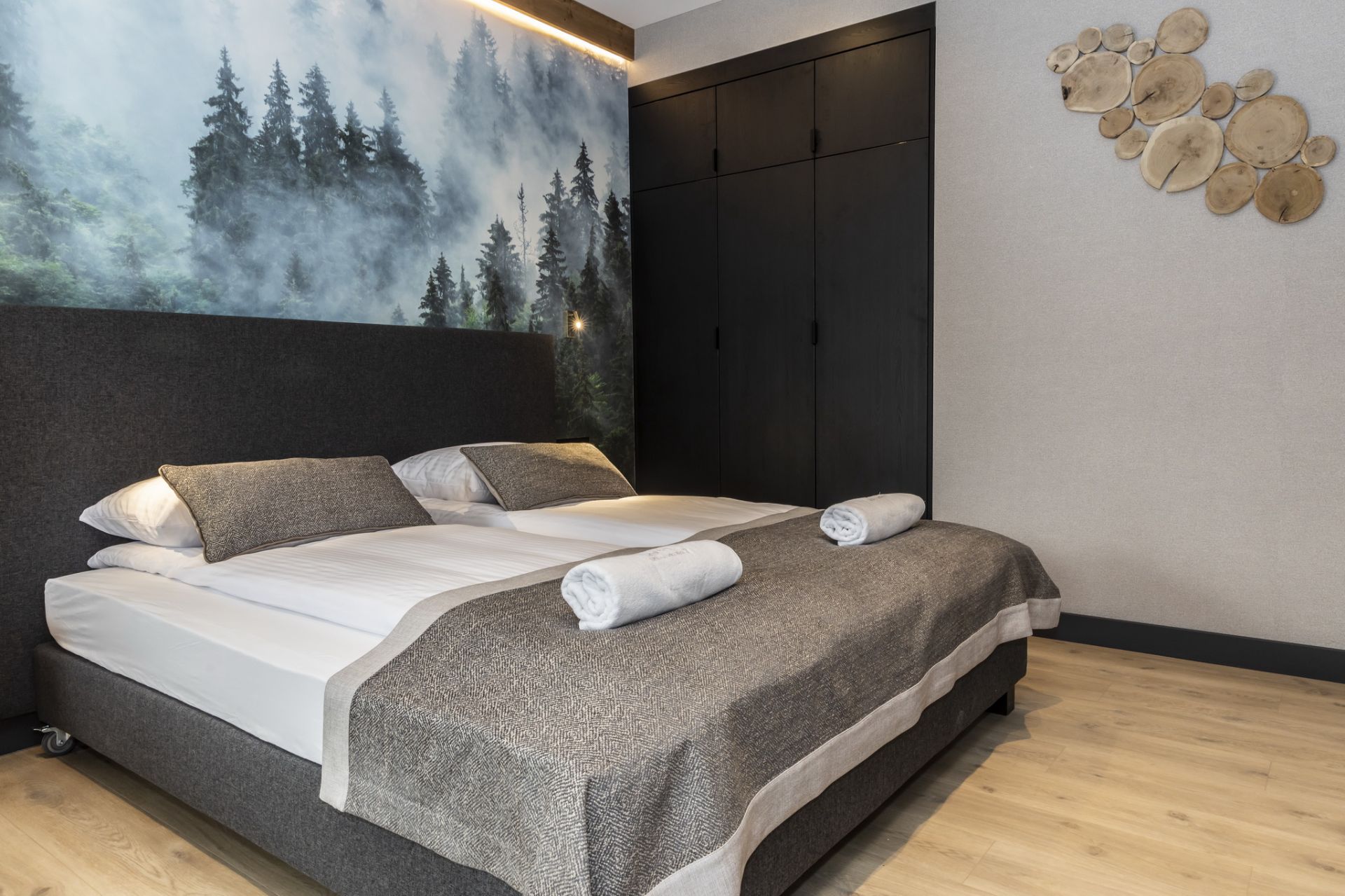 Składa się z salonu, połączonego z w pełni wyposażonym aneksem kuchennym oraz sypialni. Przestronna łazienka wyposażona jest w prysznic. Z południowego tarasu można podziwiać widok na Giewont oraz Czerwone Wierchy.
