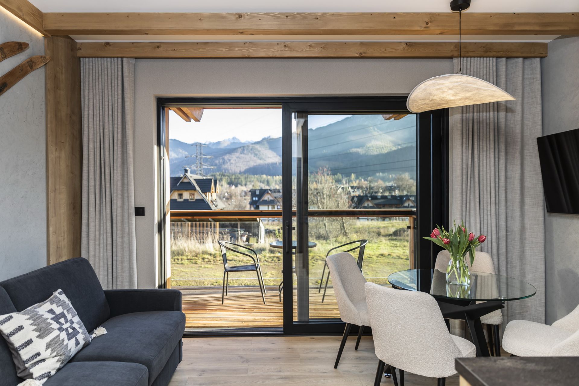 Z balkonu można podziwiać przepiękny widok na pełną panoramę Tatr i Giewont.