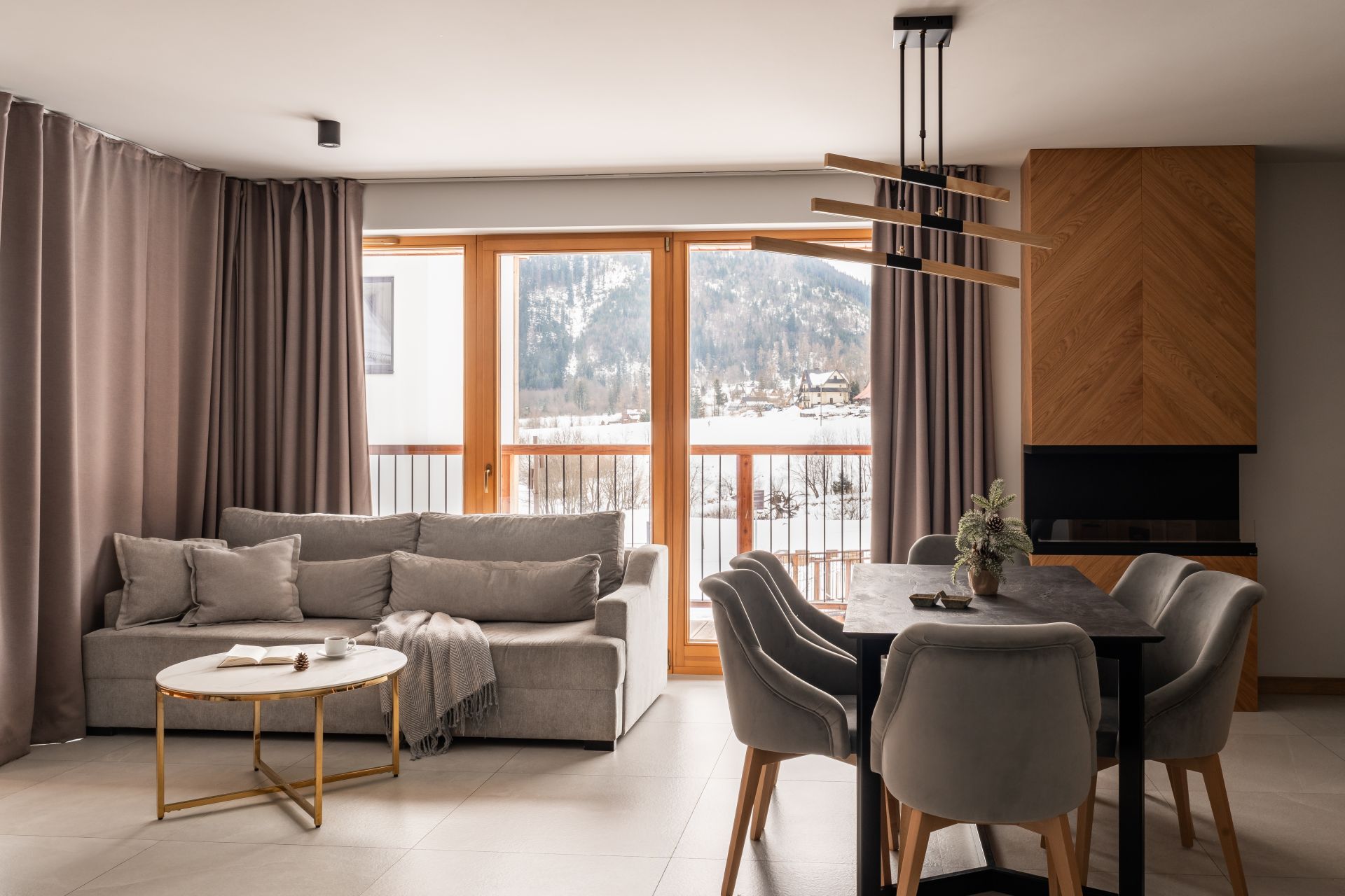 Ten piękny apartament znajduje się w malowniczej okolicy z widokiem na Tatry. Jest w pełni wyposażony, oferując wygodę i komfort podczas pobytu. Głównym elementem apartamentu jest przestronny salon, który jest idealnym miejscem do relaksu. Przylegający do salonu taras zapewnia widok na majestatyczne Tatry, gdzie można cieszyć się świeżym powietrzem i widokiem na górskie szczyty. Apartament posiada również w pełni wyposażoną kuchnię, w której znajdziesz wszystko, czego potrzebujesz do gotowania i przygotowywania posiłków. Przestronna sypialnia jest urządzona w stylu nowoczesnym i zapewnia wygodne łóżko, idealne do wypoczynku po długim dniu odkrywania okolicy. Dodatkowe udogodnienia apartamentu obejmują elegancką łazienkę z prysznicem oraz dostęp do bezprzewodowego Internetu, telewizora i innych udogodnień, które sprawią, że twój pobyt będzie jeszcze bardziej przyjemny. Lokalizacja apartamentu jest idealna dla miłośników przyrody i górskich wędrówek. Wokół znajduje się wiele szlaków turystycznych, które prowadzą do pięknych miejsc w Tatrach. Po powrocie z wycieczki, możesz zrelaksować się przy kominku, ciesząc się spokojem i ciszą. To miejsce zapewni ci niezapomniane doświadczenia i możliwość delektowania się wspaniałym widokiem na Tatry.