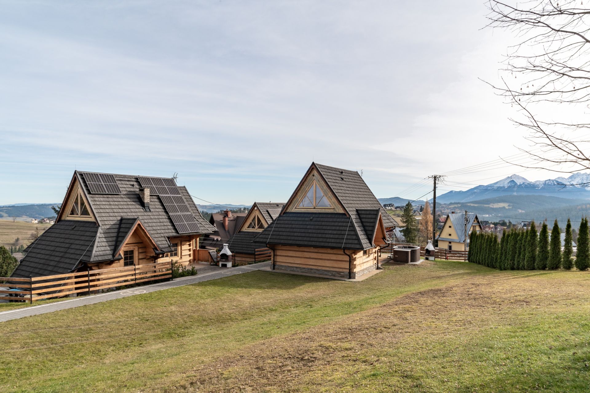 Domki zostały zaprojektowane z myślą o wygodzie i domowej atmosferze. Każdy z nich posiada przestronny salon z telewizorem z płaskim ekranem, w pełni wyposażoną kuchnię (z lodówką, zmywarką, płytą kuchenną i czajnikiem elektrycznym), przytulne sypialnie oraz nowoczesne łazienki z prysznicem. Dodatkowym atutem jest balkon lub taras, z którego można podziwiać górskie krajobrazy, oraz ogród z miejscem do grillowania – idealny na wieczorne spotkania w gronie najbliższych.