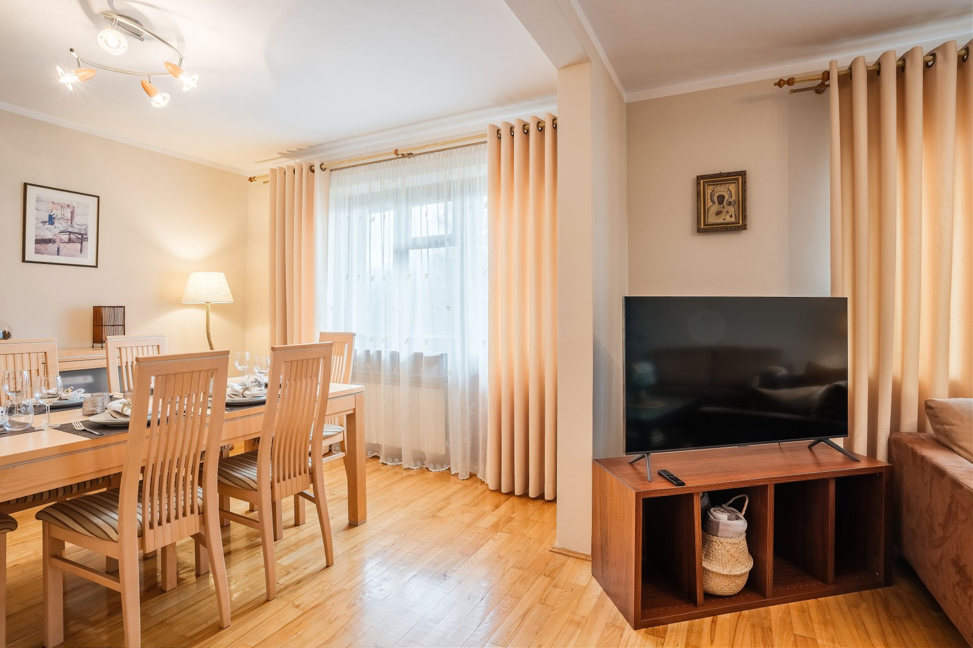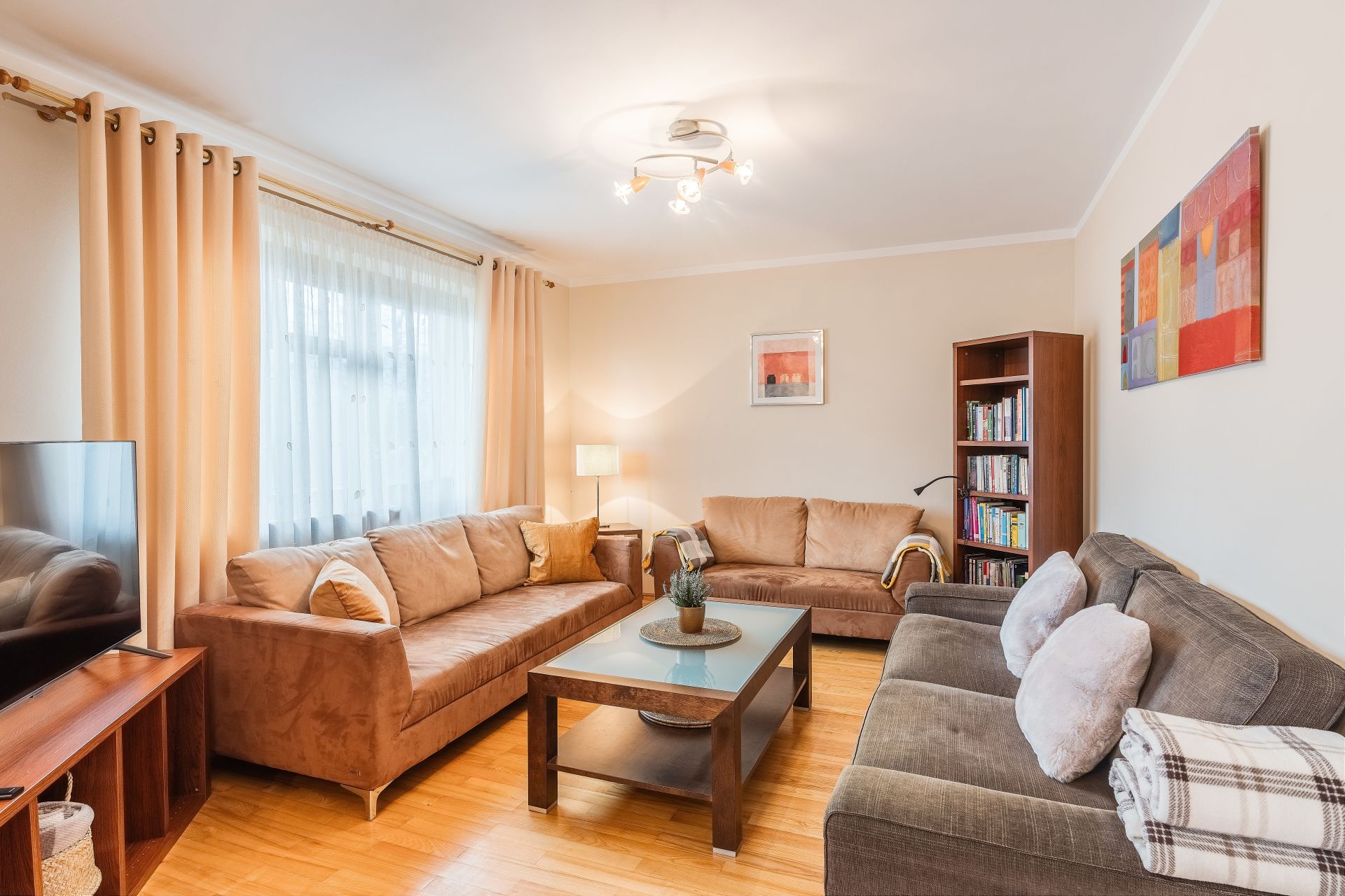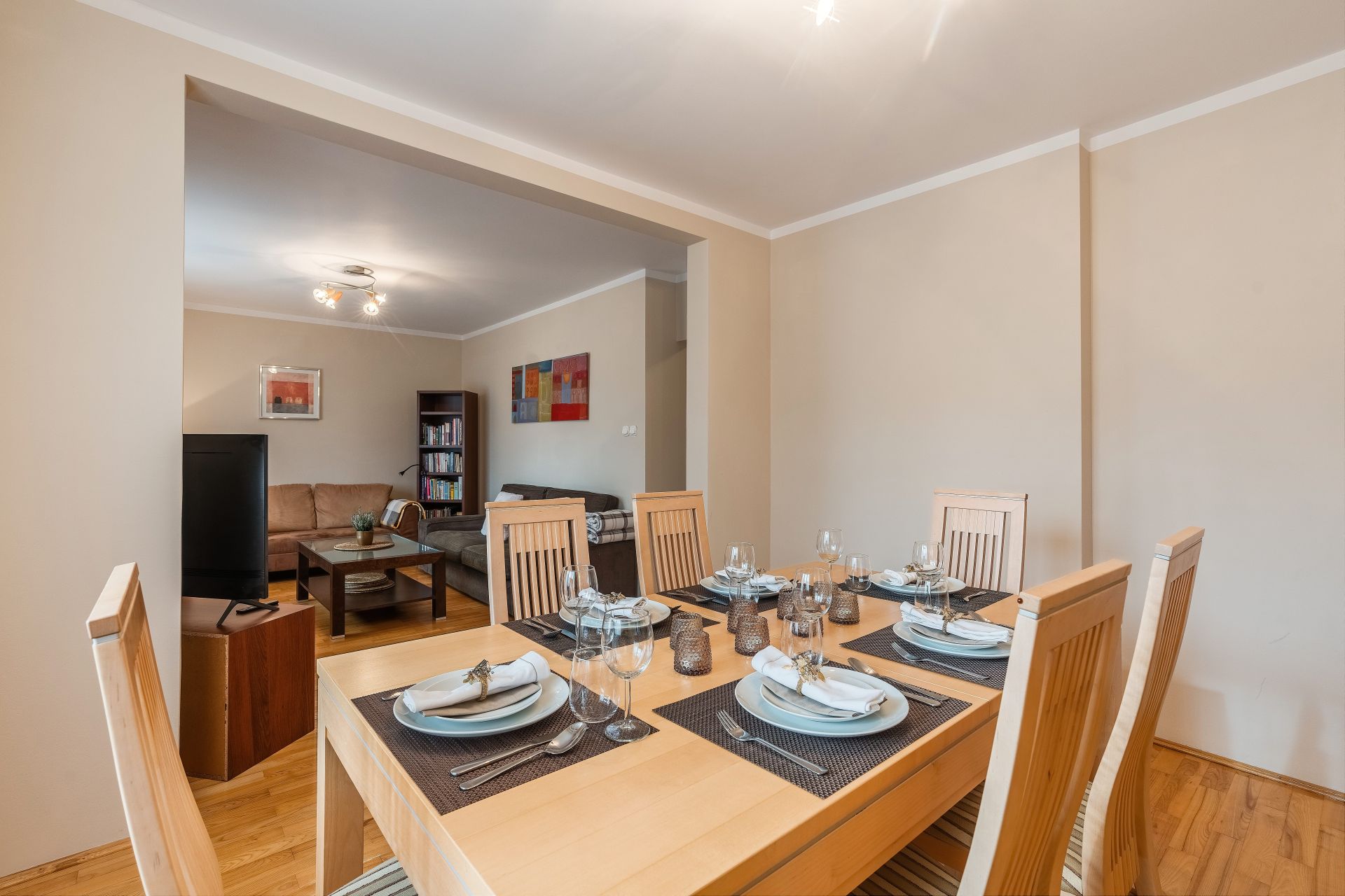 Składa się z pięciu osobnych sypialni, salonu, kuchni oraz trzech łazienek (dwie łazienki - z kabiną prysznicową, a jedna z wanną). W salonie znajdują się dwie sofy, TV oraz ogromny stół jadalny.